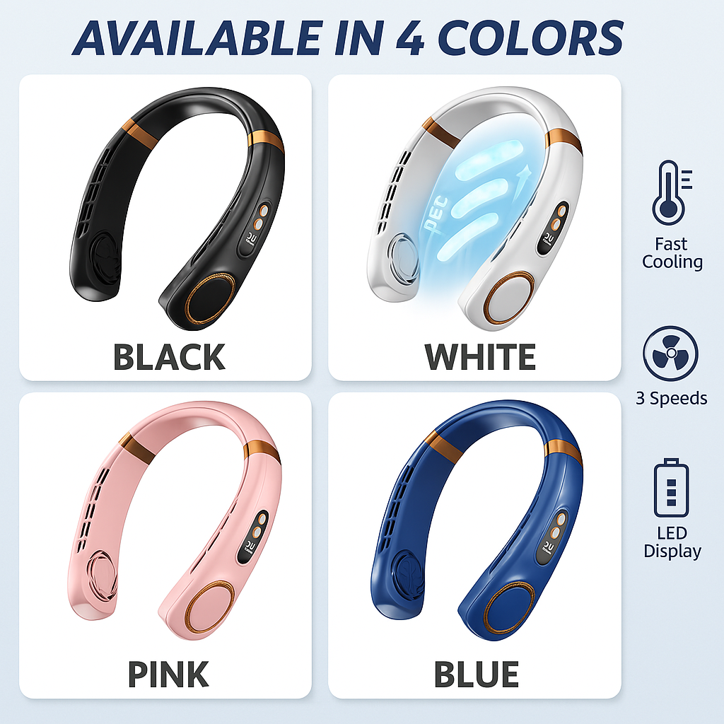 PORTABLE NECK FANS USB RECHARGABLE BLADELESS 5 SPEED COOLING HANDS-FREE - Conglom